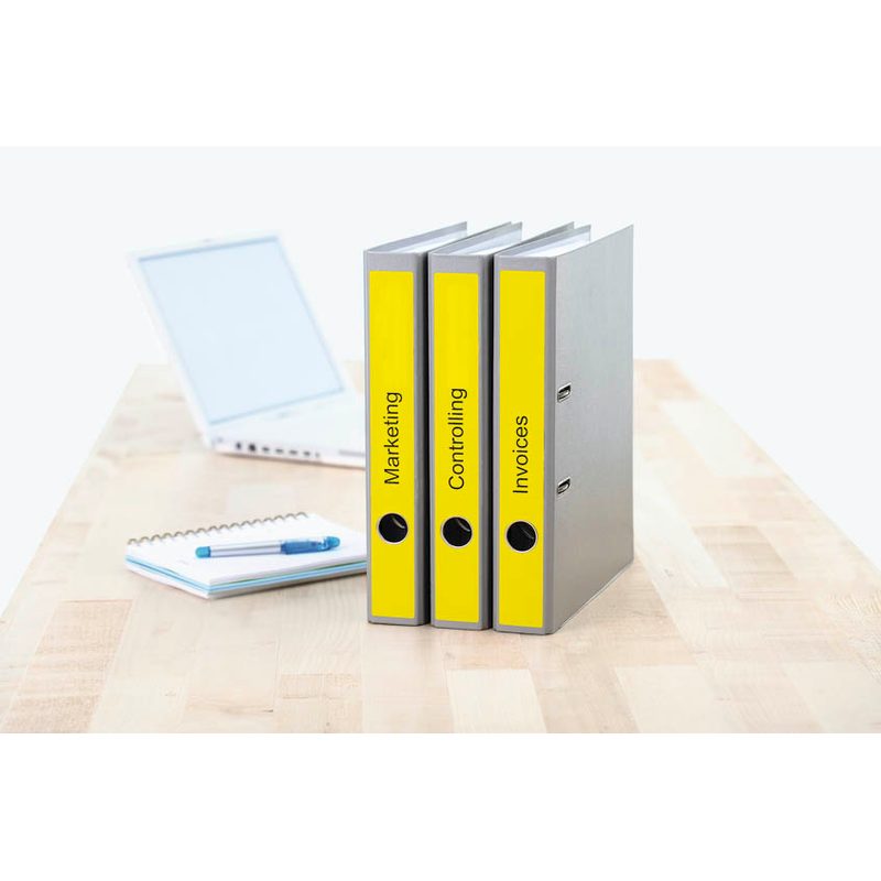 Die Etiketten haften zuverlässig und lassen sich sauber beschriften – für eine dauerhafte, ordentliche und farblich sortierte Dokumentenorganisation.