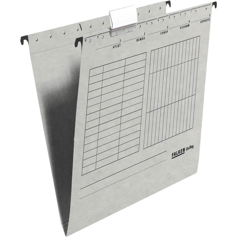 Die FALKEN Hängemappen UNIREG in grau sind eine praktische Lösung zur Aufbewahrung Ihrer Dokumente. Jede Packung enthält 25 Hängemappen und sorgt für eine ordentliche Organisation.