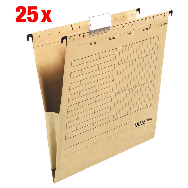 Die 25 FALKEN Hängetaschen UNIREG in natronbraun sind die perfekte Lösung für die sichere Aufbewahrung von Dokumenten und Unterlagen. Mit ihrem durchdachten Design sind sie ideal für die Verwendung in Büros und Homeoffices.Hergestellt aus robustem Karton bieten diese Hängetaschen ausreichend Platz für Ihre Unterlagen und sind einfach zu handhaben. Sie lassen sich problemlos in Hängeregistraturen einhängen und sorgen für eine übersichtliche Ablage.🔹 Robustes Kartonmaterial – langlebig und stabil🔹 Farbe: Natronbraun – harmonisch und unauffällig🔹 Praktische Aufhängung – für einfache Organisation🔹 Vielseitig einsetzbar – für Dokumente, Rechnungen und mehr🔹 Einfache Handhabung – schnelles Einlegen und EntnehmenDie FALKEN Hängetaschen sind ein nützliches Zubehör für alle, die Wert auf eine ordentliche Ablage legen.