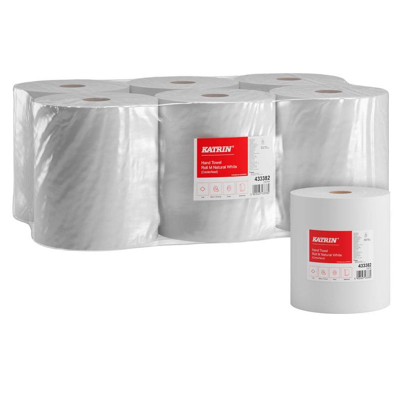 Die KATRIN Handtuchrollen Centerfeed M 300 in naturweiß sind die ideale Lösung für eine hygienische Handtuchversorgung in stark frequentierten Bereichen. Mit einer praktischen 1-lagigen Ausführung bieten sie eine einfache Handhabung und eine hervorragende Saugfähigkeit.Technische Daten: