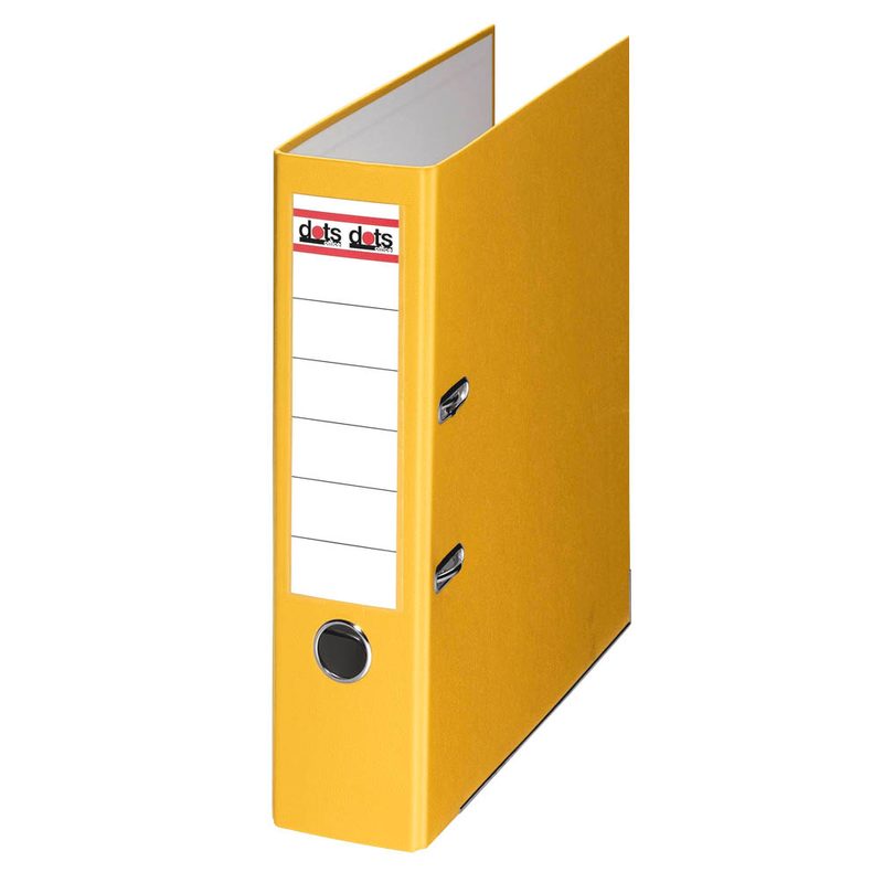 Der gelbe dots Ordner mit 8 cm Rücken ist perfekt für umfangreiche Unterlagen. Aus widerstandsfähigem Kunststoff gefertigt, eignet er sich hervorragend für regelmäßige Nutzung im Büroalltag.