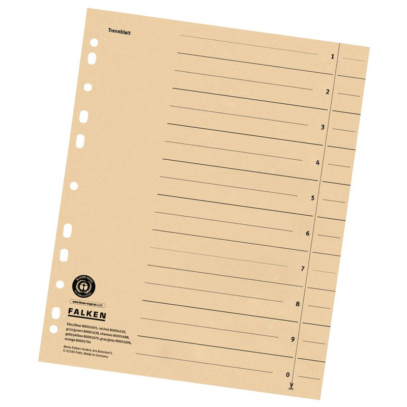 Die FALKEN Trennblätter in Chamois (cremefarben) bieten eine dezente Lösung zur Untergliederung Ihrer Unterlagen. Die neutrale Farbgebung passt in jedes System.