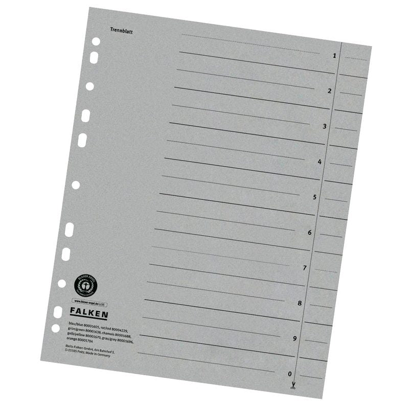 Die grauen FALKEN Trennblätter bieten eine dezente Möglichkeit zur Gliederung Ihrer Unterlagen. Sie passen sich neutral jeder Sortierung an.