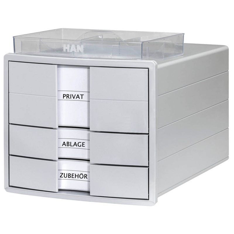 Die HAN Schubladenbox IMPULS in lichtgrau ist die ideale Lösung für die Organisation Ihrer Büromaterialien. Mit drei Schubladen bietet diese Box ausreichend Platz für Dokumente und sorgt für eine übersichtliche Ablage.