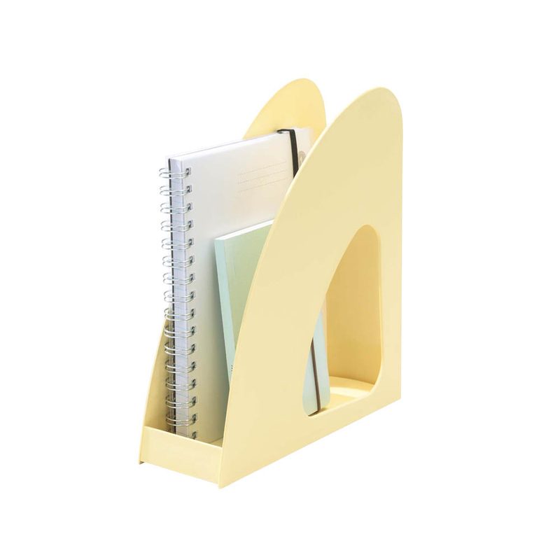 Der HAN Stehsammler Re-LOOP in Pastellgelb sorgt für eine freundliche und einladende Atmosphäre am Arbeitsplatz.