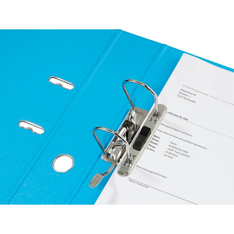 Der hellblaue LEITZ 1007 Ordner bringt frische Farbe und bewährte Qualität auf deinen Schreibtisch. Perfekt geeignet zur farblichen Trennung von Themen, Projekten oder Abteilungen.