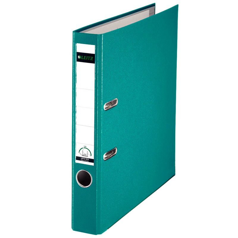 Frischer Look für deinen Arbeitsplatz: Der LEITZ 1015 Ordner in Türkis kombiniert auffällige Farbe mit funktionalem Design. Perfekt zur farblichen Sortierung deiner Projekte.