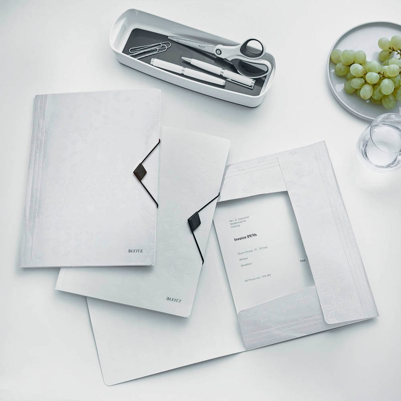 Der LEITZ WOW Eckspanner in Weiß überzeugt mit schlichter Eleganz und einem cleanen Look. Ideal für alle, die eine neutrale, moderne Lösung für ihre Dokumente suchen – egal ob privat, im Büro oder für Präsentationen.
