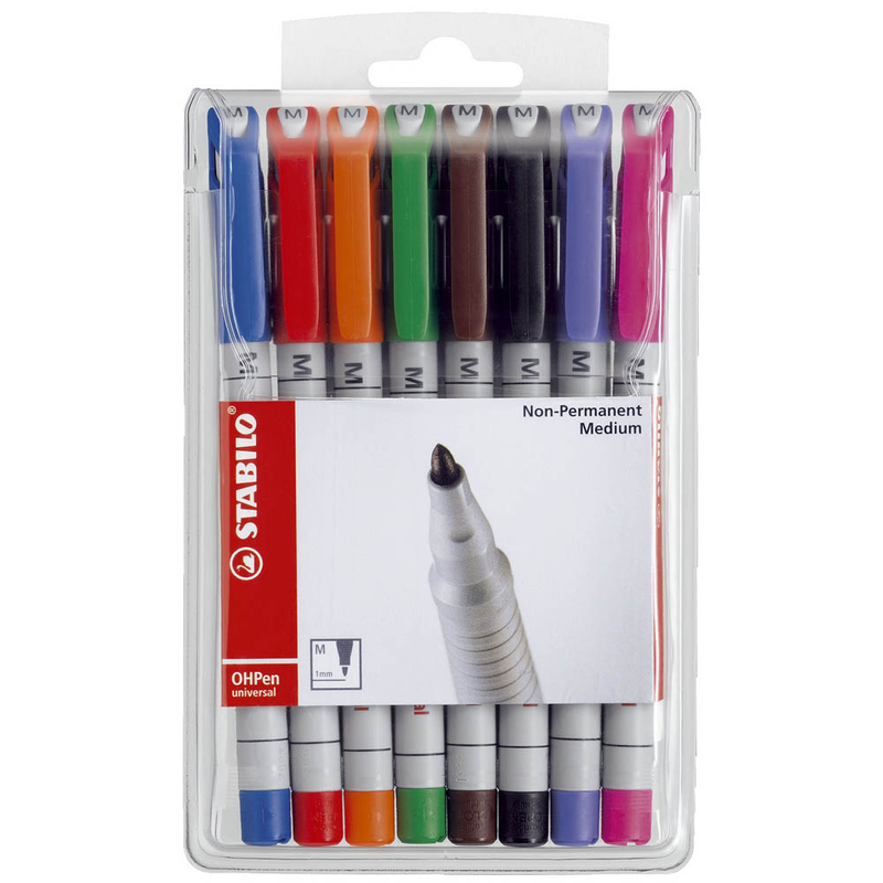 Marke STABILOHersteller / Verantwortliche Person STABILO International GmbH, Schwanweg 1, 90562, Heroldsberg, DE, info@stabilo.comProdukttypenbezeichnung OHPenVerpackungsart mit Menge 1 Pack = 8 St.Produktart FolienstifteDetailschreibfarbe blau, rot, grün, schwarz, orange, braun, lila, pinkStärke mittel (M)Ausführung der Griffzone rundFarbe Gehäuse grauMaterial Gehäuse KunststoffSpitze Rundspitzegeeignet für auf allen glatten Oberflächenoffen lagerfähig bis zu einigen StundenStrichstärke 1,0 mmArtikelnummer 193 282