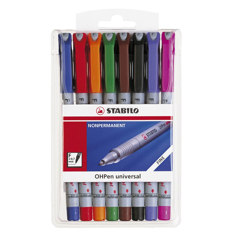 Marke STABILOHersteller / Verantwortliche Person STABILO International GmbH, Schwanweg 1, 90562, Heroldsberg, DE, info@stabilo.comProdukttypenbezeichnung OHPenProduktart FolienstifteDetailschreibfarbe blau, rot, grün, schwarz, orange, braun, lila, pinkStärke fein (F)Ausführung der Griffzone rundFarbe Gehäuse grauMaterial Gehäuse KunststoffSpitze Rundspitzegeeignet für auf allen glatten Oberflächenoffen lagerfähig bis zu einigen StundenStrichstärke 0,7 mmArtikelnummer 193 294