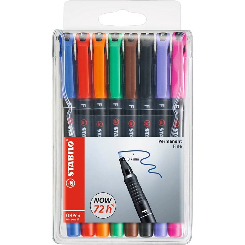 Marke STABILOHersteller / Verantwortliche Person STABILO International GmbH, Schwanweg 1, 90562, Heroldsberg, DE, info@stabilo.comProdukttypenbezeichnung OHPenVerpackungsart mit Menge 1 Pack = 8 St.Made in GermanyProduktart FolienstifteDetailschreibfarbe orange, grün, rot, blau, braun, schwarz, lila, pinkStärke fein (F)Ausführung der Griffzone rundFarbe Gehäuse schwarzMaterial Gehäuse KunststoffSpitze Rundspitzegeeignet für fast allen glatten Oberflächenoffen lagerfähig bis zu einigen TagenStrichstärke 0,7 mmArtikelnummer 155 113