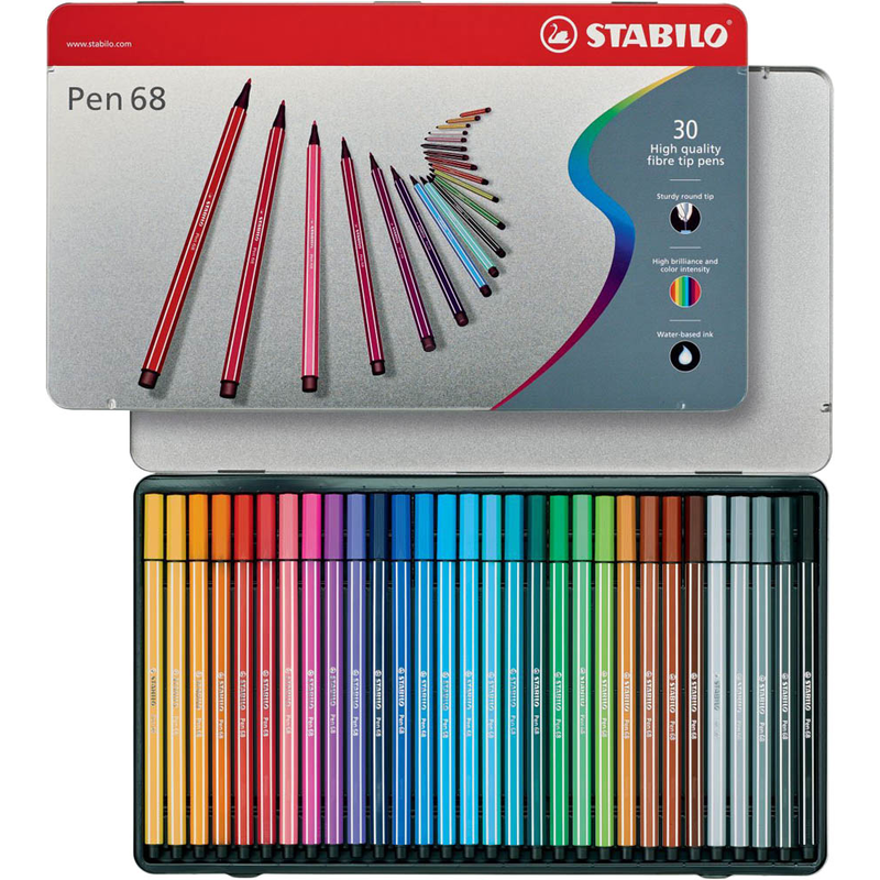 Marke STABILOHersteller / Verantwortliche Person STABILO International GmbH, Schwanweg 1, 90562, Heroldsberg, DE, info@stabilo.comProdukttypenbezeichnung Pen 68Verpackungsart mit Menge 1 Pack = 30 St.Lieferanten-Art.-Nr. 6830-6Made in GermanyProduktart FilzstifteDetailschreibfarbe eisgrün, zitronengelb, rosa, gelbrot, hellblau, ultramarinblau, hellgrün, smaragdgrün, rötel, dunkelblau, laubgrün, gelb, braun, schwarz, karmin, dunkelrot, türkisblau, blaugrün, orange, violett, rosarot, azurblau, lila siena, ocker dunkel, hellgrau, mittelgrau, dunkelgrau, schwarzgrau, paynesgrauFarbe Gehäuse 30 verschiedene FarbenMaterial Gehäuse KunststoffAusführung der Griffzone SechskantSpitze Rundspitzeoffen lagerfähig bis zu 24 StundenVerpackung Metall-EtuiStrichstärke 1,0 mmSicherheitshinweis ACHTUNG! Nicht geeignet für Kinder unter 36 Monaten, wegen verschluckbarer Kleinteile. ErstickungsgefahrArtikelnummer 816 304