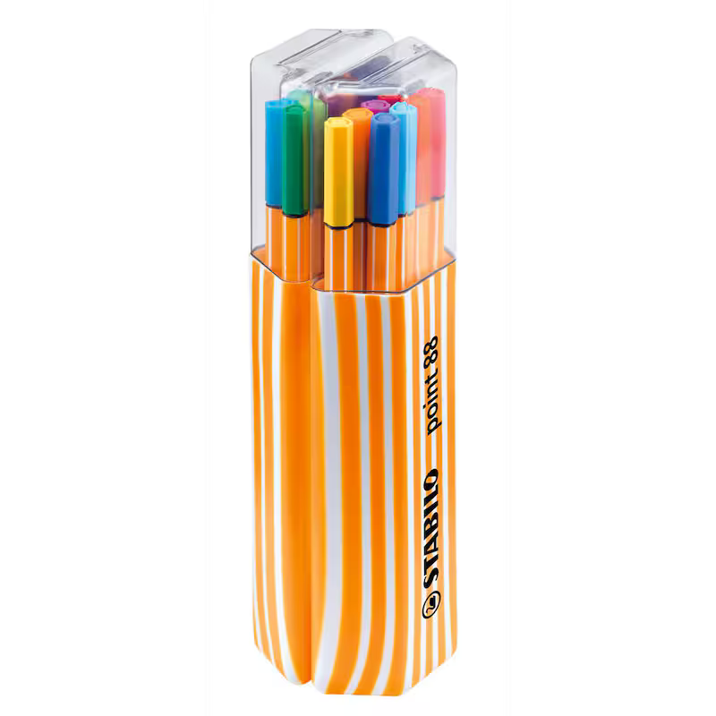 Marke STABILOHersteller / Verantwortliche Person STABILO International GmbH, Schwanweg 1, 90562, Heroldsberg, DE, info@stabilo.comProdukttypenbezeichnung point 88Verpackungsart mit Menge 1 Pack = 20 St.Lieferanten-Art.-Nr. 8820-01Made in GermanyProduktart FinelinerSchreibfarbe farbsortiertDetailschreibfarbe blau, braun, dunkelgrau, dunkelrot, eisgrün, gelb, grün, hellgrau, hellgrün, lila, mittelblau, ocker dunkel, olivgrün, orange, pink, rot, schwarz, türkis, violettFarbe Gehäuse orangeMaterial Gehäuse KunststoffAusführung der Griffzone SechskantSpitze metallgefasste SpitzeStrichstärke 0,4 mmArtikelnummer 502 747