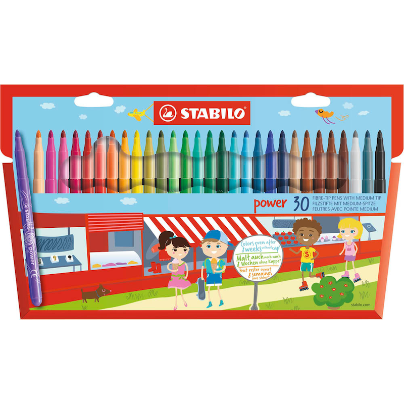 Marke STABILOHersteller / Verantwortliche Person STABILO International GmbH, Schwanweg 1, 90562, Heroldsberg, DE, info@stabilo.comProdukttypenbezeichnung powerVerpackungsart mit Menge 1 Pack = 30 St.Produktart FilzstifteDetailschreibfarbe 30 verschiedene FarbenFarbe Gehäuse 30 verschiedene FarbenMaterial Gehäuse KunststoffAusführung der Griffzone rundSpitze Rundspitzeoffen lagerfähig bis zu einigen WochenVerpackung Karton-EtuiStrichstärke 2,0 mmArtikelnummer 108 583
