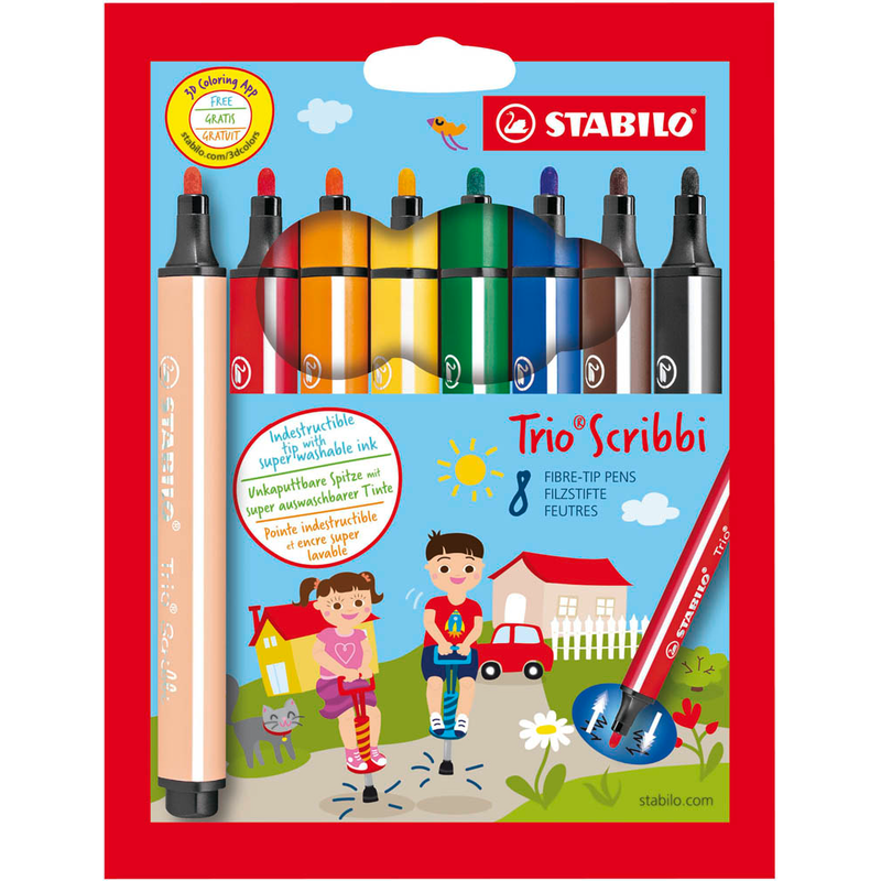 Marke STABILOHersteller / Verantwortliche Person STABILO International GmbH, Schwanweg 1, 90562, Heroldsberg, DE, info@stabilo.comProdukttypenbezeichnung Trio® ScribbiVerpackungsart mit Menge 1 Pack = 8 St.Produktart FilzstifteDetailschreibfarbe rot, orange, gelb, grün, blau, braun, schwarz, fleischfarbenFarbe Gehäuse rot, orange, gelb, grün, blau, braun, schwarz, fleischfarbenMaterial Gehäuse KunststoffAusführung der Griffzone ergonomisch, DreikantSpitze Rundspitzeoffen lagerfähig keine HerstellerangabenVerpackung Kunststoff-EtuiStrichstärke 2,0 mmSicherheitshinweis ACHTUNG! Nicht geeignet für Kinder unter 36 Monaten, wegen verschluckbarer Kleinteile. ErstickungsgefahrArtikelnummer 603 600