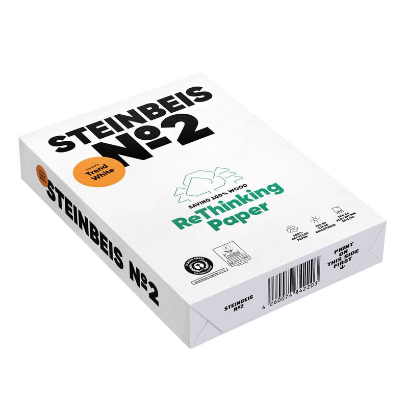 Setzen Sie auf das STEINBEIS Recyclingpapier No.2 für eine nachhaltige Drucklösung.